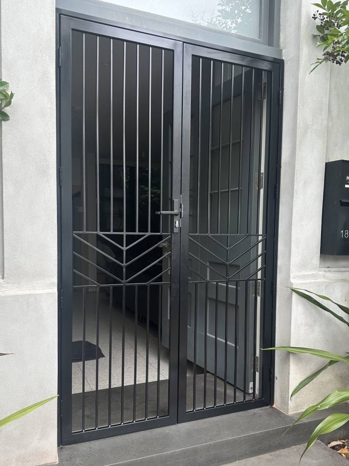 - Strengthening steel frame installed to brick or concrete or the existing Timber door jamb giving extra strength.